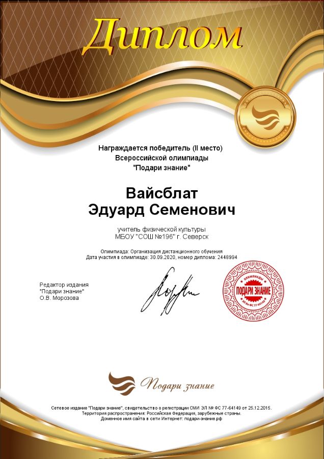 Личный сайт учителя физической культуры Вайсблат Эдуарда Семеновича